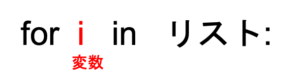 このfor文を言語化すると、「リストの要素の数だけ処理を繰り返す」になります。
