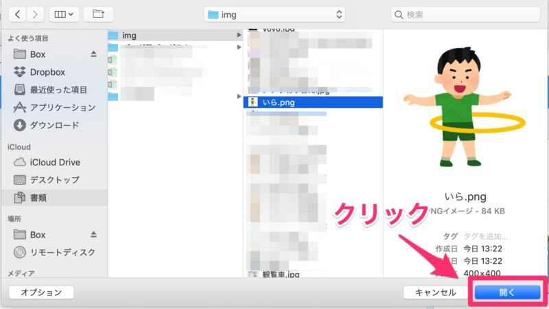 試しに「いらすとや」のフリー素材からアップロードしてみます。