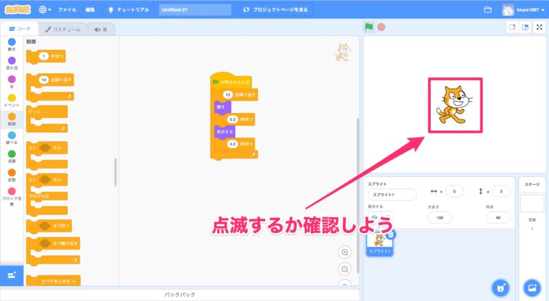 この記事では、スプライトを点滅させるプログラムについて紹介します。