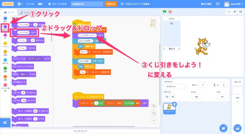 くじ引きゲームを作って、リストの使い方を覚えていきましょう!