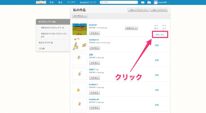 この記事では、作成したScratchのプログラムを公開したり非公開にしたりする方法について紹介していきます。