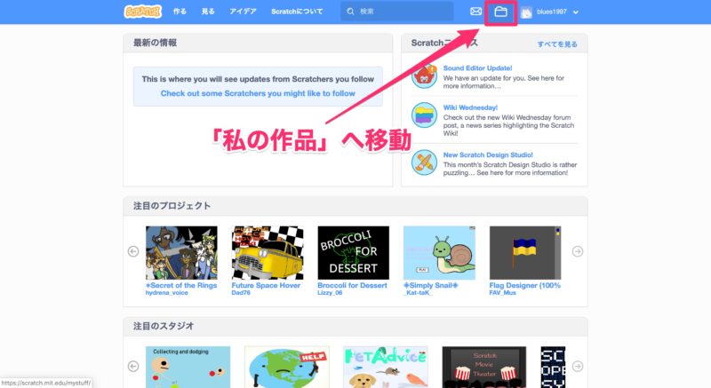 スタジオは、Scratch(スクラッチ)で作成した作品をジャンル別に保存する場合などに利用します。
