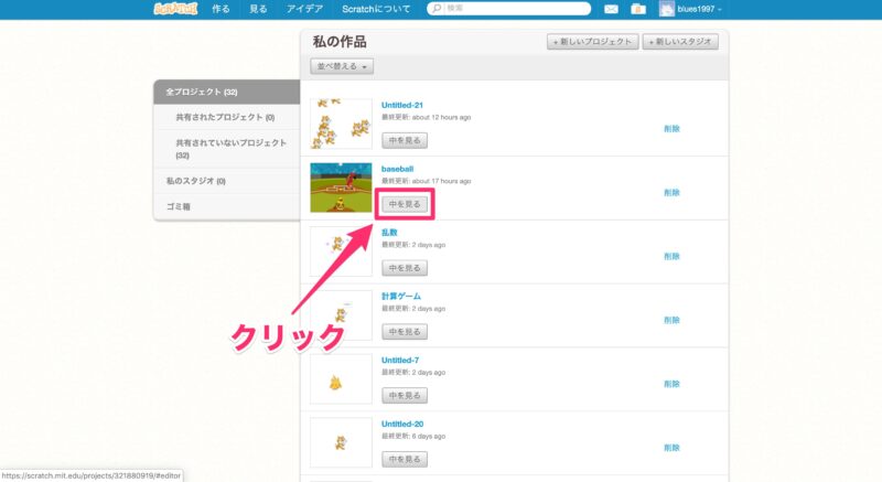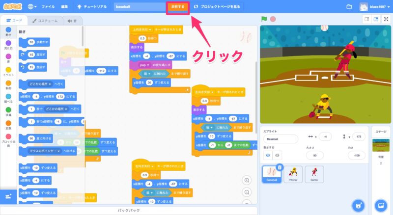 Scratch(スクラッチ)の作品共有はとても簡単です。