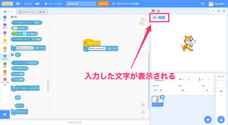 Scratch(スクラッチ)で入力した文字を表示する方法について紹介していきます。