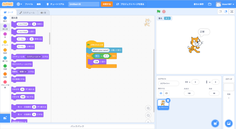 Scratch(スクラッチ)で、文字を入力して、表示させる方法について簡単な例を使って紹介しました。