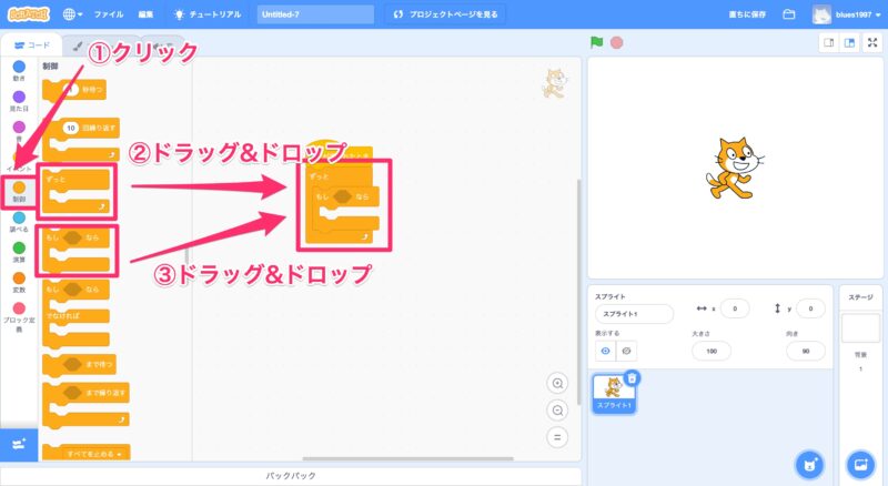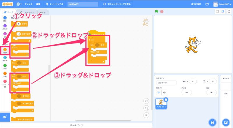 Scratch(スクラッチ)では、「もし〜なら」「もし〜なら、でなければ〜」という2つの条件分岐ブロックが用意されています。
